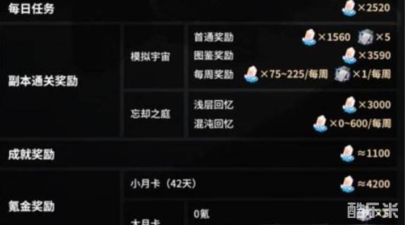 2、模拟宇宙每周300.一个月就是1200星石。首次通关还可以获得一次性的900星石。