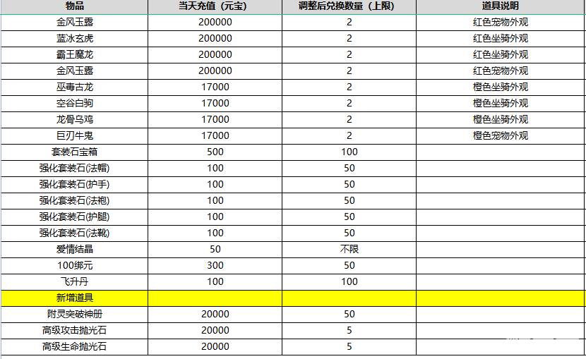 2.兑换上限每周一重置一次,开服7天内新服不参与,申请物品均为绑定物品。