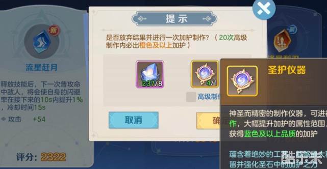 高级制作做圣物加护固然有保底,但是考虑到成本问题,所以圣护仪器一般来说都是存够 20 个才开始进行高级制作,但是这样一来圣护仪器的养成进度就太慢了,对于平民玩家来说就不太友好,所以我这里有一个低成本做橙色及红色品级圣物加护的技巧,经过自己亲身实践证实确实有效。