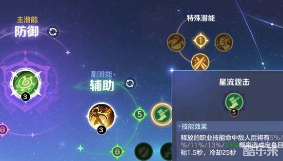 辅潜能第一技能对于职业缺乏控制的职业可以星流霆击,没有攻击技能依赖普攻输出的职业除外。