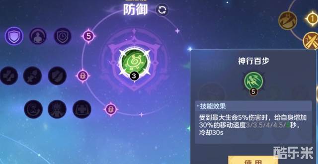 对于依赖普攻输出和腿短的防御职业,这里建议选择神行百步,被动提升机动性方便后撤和追击。