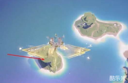 4、调查后,往箭头方向走,飞下去,去箭头处的小岛。