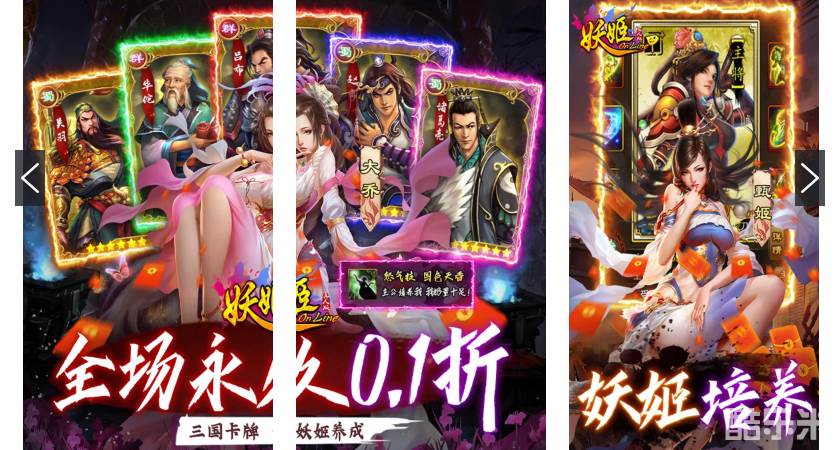 无VIP系统,充值比例1:10,次日登录性感小乔皮肤 《妖姬OL-0.1折扣服》是一款是三国加策略类网游精品大作,游戏结合了RPG游戏的精彩剧情和策略游戏的趣味玩法,独特的武将天赋技能独一无二,属性培养配合转生系统,高自由度打造你自己的个性角色。本平台已提供安卓版妖姬Online下载,游戏囊括经典三国人物形成完美的武将养成体系,更有传世神兵,宝马配英雄,并且把众多经典的三国演义桥段融汇到“征讨”中。