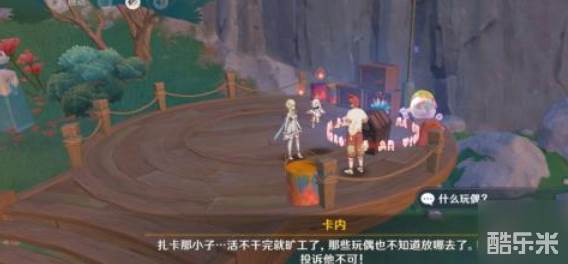 任务前引:旅行者和派蒙从西北侧离开悠悠集市时,遇到了一位玩偶设计师卡内……