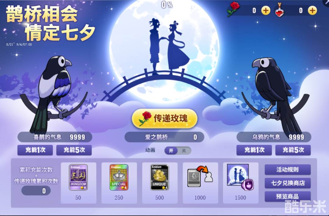 获得爱之鹊桥后消耗爱之玫瑰给牛郎和织女传递玫瑰并获得各种道具。