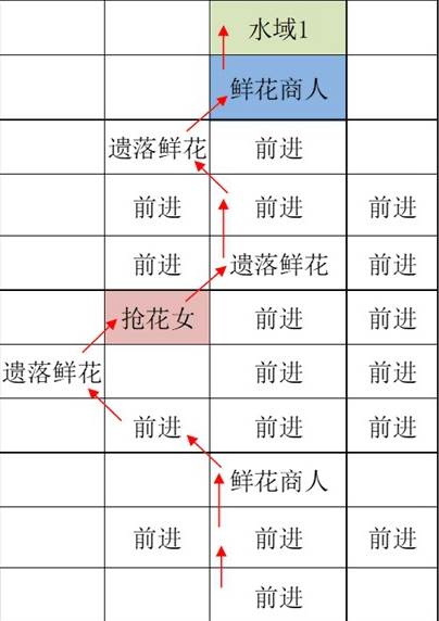 3、宫道:前进-前进-鲜花商人-前进-遗落鲜花-抢花女-遗落鲜花-前进-遗落鲜花-鲜花商人-水域1