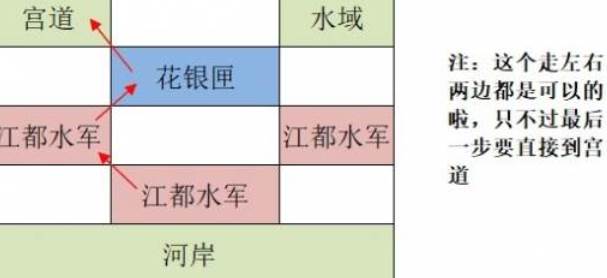 2、河岸:江都水军-江都水军(左)-花银匣-宫道