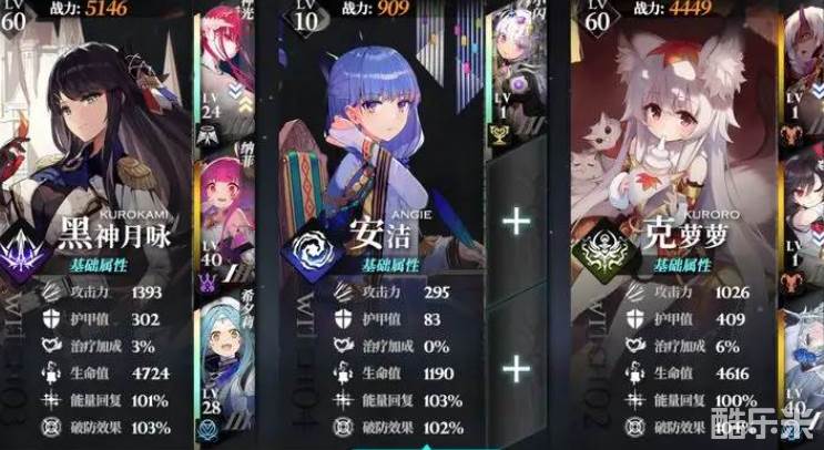 因为灼烧命中率非常丢人,所以能降抗能加效果命中的卡萝琳是最优选,以上三人需要绑在一起。