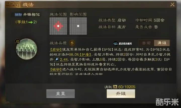 【并锋相佑】启动时,孙鲁育和选择的友军会获得一个叫做“护佑”的状态。这意味着,攻击敌人时,孙鲁育和被牵手的友军都会得到98%的护盾加成,持续两回合,并且每次触发都能提升武力和智力,最多能叠加六层。这些加成不仅仅是护盾,武力智力的提升也是十分可观的,尤其是当你能够保证每回合都能最大化触发护佑效果