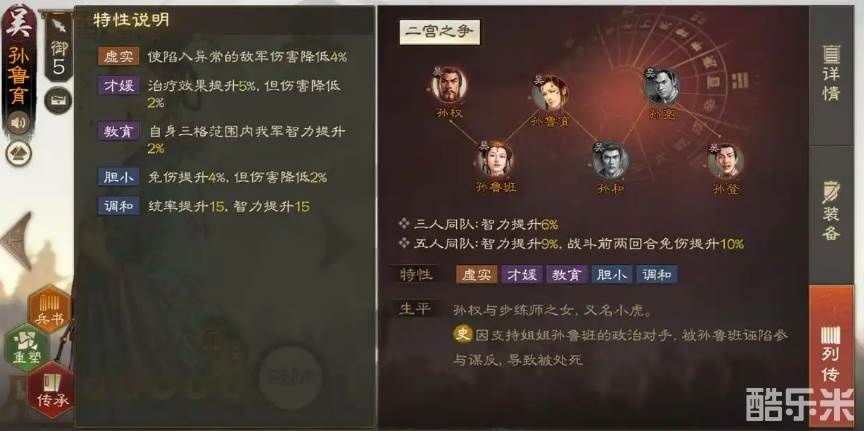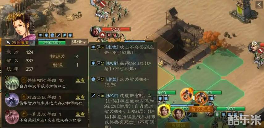 孙鲁育,吴国的五御枪兵,外表可能给人一种并不特别突出的印象,但实际上,她的能力堪称游戏中的一大隐形杀器。今天带来三国志战棋版孙鲁育介绍。如果你还没注意到她的话,那你可能错过了一个非常强劲的辅助角色——她能在每回合为你提供最多588%护盾的同时,还能增强武力和智力。下面和酷乐米小编一起来看看吧