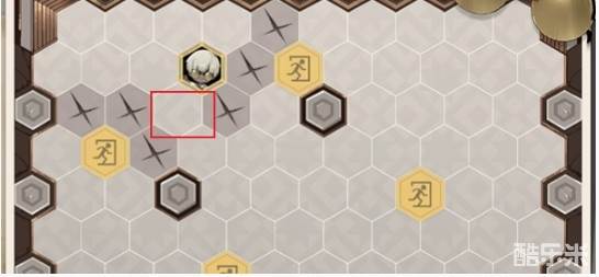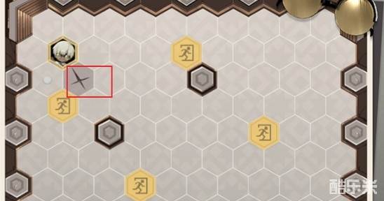 1、首先堵住左侧出口右上方的位置,恩基移动后点击第三行的第一个格子。