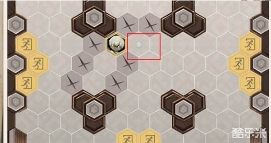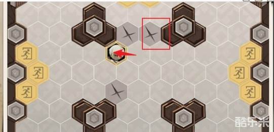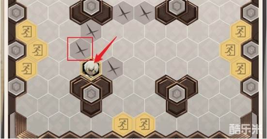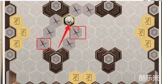 6、往右上方移动两格,按照图中顺序依次点击对应格子。