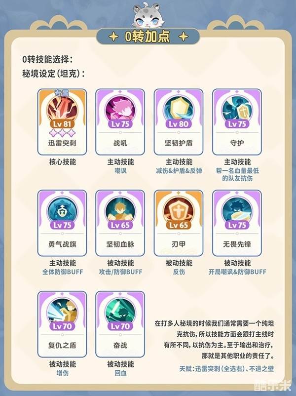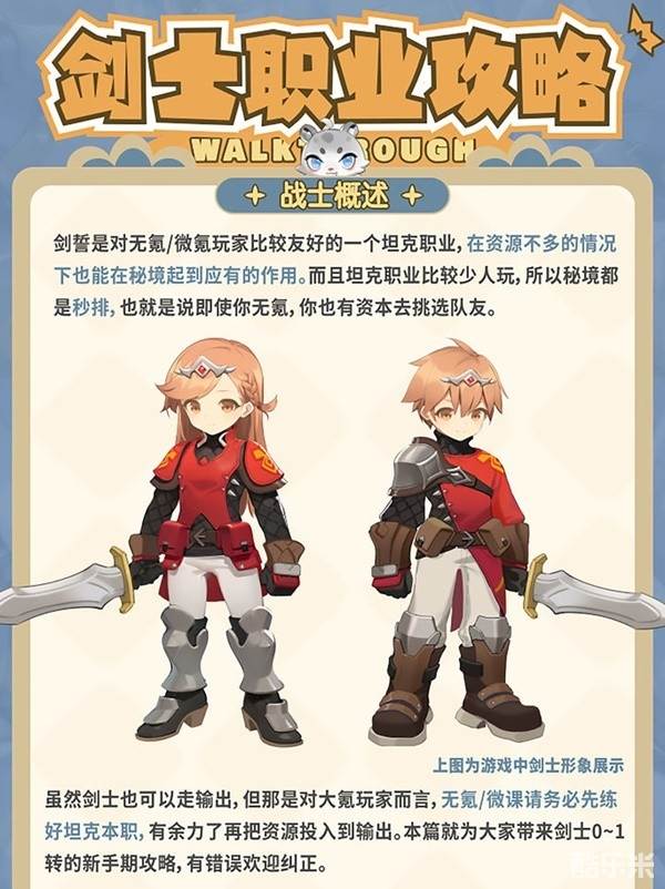 款游戏中的剑士算是对零氪玩家较为友好的一个职业,作为一个坦克职业,即使在资源不多的情况下也能在秘境起到应有的作用。所以根据这个职业为大家带来了他的技能加点和宠物选择解析一图流攻略大全,感兴趣的玩家下面和酷乐米小编一起来看看吧