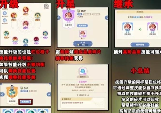 3、技能碎片用于技能升星,碎片回收的星星精华可兑换技能。