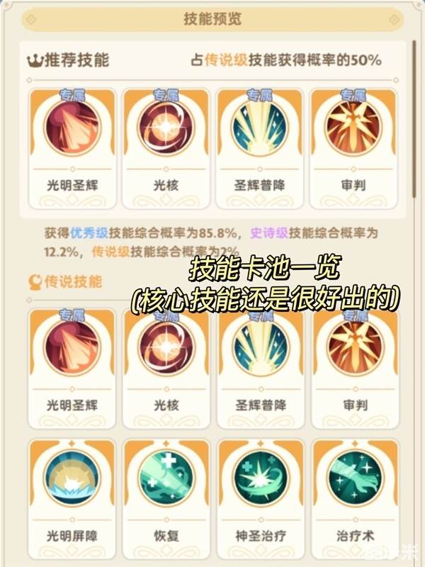 被动技能:圣辉普降、祷告光芒、光明印记、祈祷者、能量转换。