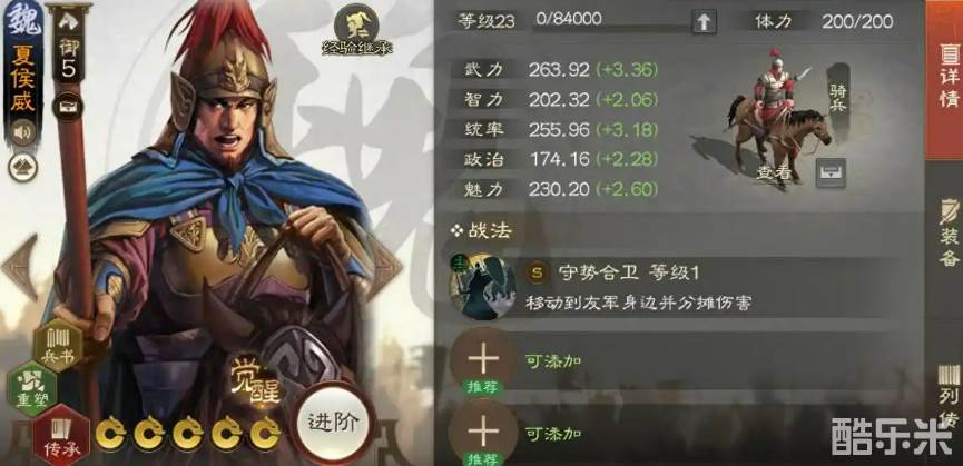 今天酷乐米小编带来三国志战棋版夏侯威介绍。作为一个骑兵,他的坦克属性可能让一些玩家有点犹豫,毕竟骑兵的坦度不像盾兵那么硬,但夏侯威的独特战法和技能让他成为了一个非常有潜力的角色。下面我们就来聊一聊这位魏国五御骑兵的具体玩法和阵容推荐。