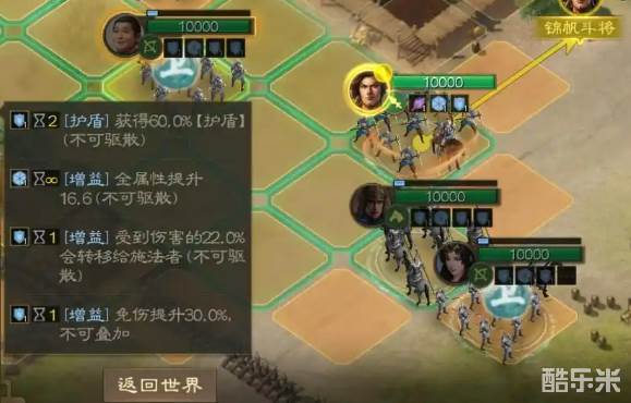 说到他的战法【守势合卫】,这是夏侯威的亮点之一。这个战法不仅能让他迅速转移到友军身边,还能为周围的友军加上60%的护盾,持续两回合。这个护盾可是无法驱散的哦!更重要的是,夏侯威还为周围的友军提供一个22%的伤害分摊,保证队友即使面对高爆发伤害,也能轻松抵挡。而且,他还能为自己加上30%的免伤,这个免伤效果也是群体加成,让队友一起受益。唯一的缺点是持续时间只有两回合,一旦夏侯威被控制,效果就容易中断。所以,如何保护夏侯威不被控制,是发挥他强大作用的关键。