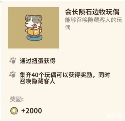 集齐40个玩偶可以获得奖励,同时召唤隐藏客人。