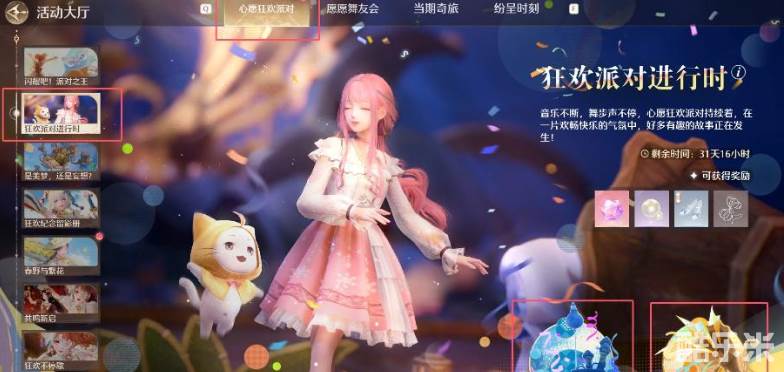 2、点击活动大厅,在狂欢派对进行时里可以看到有两个任务