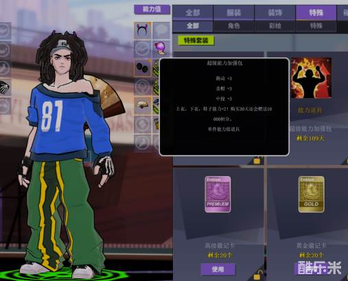 道具商城,特殊,新手职业套装,1100点券28天,可以获得跑动/弹跳/身体对抗中任意+3。通过获取角色碎片解锁强化剂,获取相应能力。超特创建时选择,最新的8代可以自选8点能力,单能力不能超过4点。活动赠送的发型、商城购买的发型、抽奖获取的发型,会有能力加成。如表中所示,笔者已经佩戴3个+能力的装饰,如果想继续堆叠,就需要依靠队友的魔怪头饰,俗称蹭角。