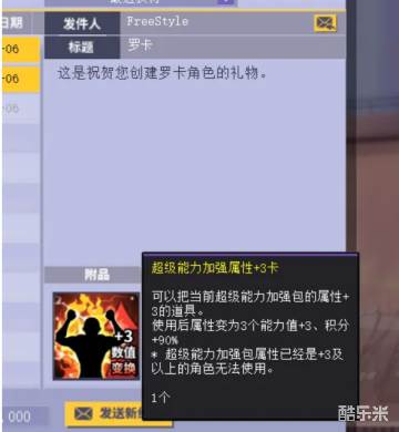 道具商城,特殊,超级能力加强包,可以获得部分属性+2,在商城购买超级加强属性随机卡可以获得+3,甚至+4/+5,后者获取概率见官方概率。九代角色罗卡直接送+3。