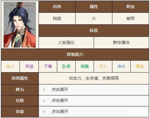 《如鸢》陆逊是一位火属性的破军角色,有着极高的群体爆发能力,能够通过被动来对所有敌人造成极高的连锁AOE,因此很多玩家都想知道如鸢陆逊的技能是什么,下面酷乐米小编给玩家们带来了如鸢陆逊的技能天赋介绍。