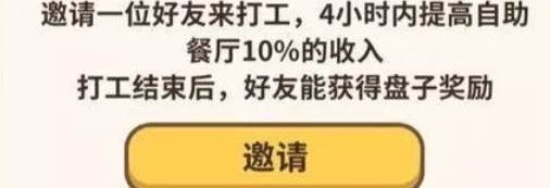 动物餐厅手游中,玩家想要外出打工需要收到别人发来的打工邀请,然后点击邀请链接就能外出打工获得盘子。