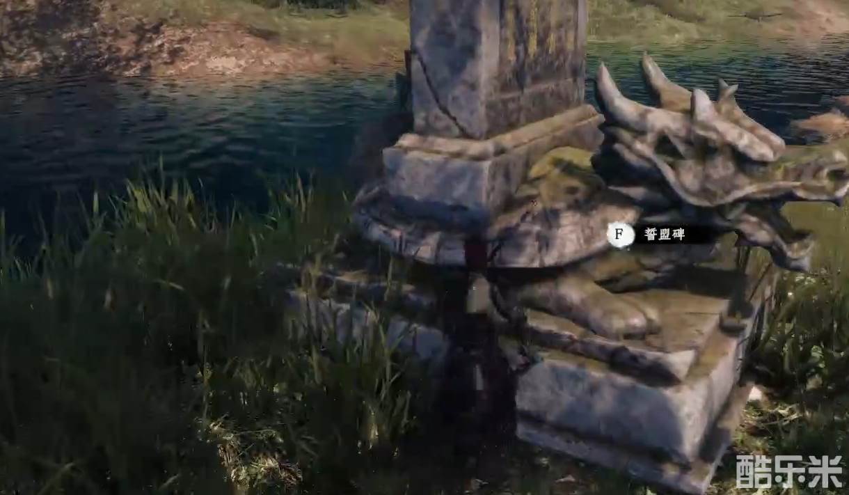 各位通过驿站来到誓盟碑区域,然后骑马前往誓盟碑所在之处,找不到的玩家可在地图上标点(931,534),到这就能直接找到誓盟碑。在这里与誓盟碑交互后能了解到四兄弟的名字,此后立刻离开,若继续等待会触发剧情,并与翁城铭对战。此次战斗只要触发就无法逃避,且翁城铭实力很强,能轻松秒掉刚入江湖的玩家,因而各位最好在战斗触发前立刻避开,待练度上来后再来誓盟碑这里找到。