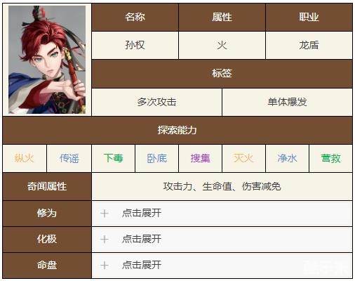 《如鸢》孙权是一位火属性的龙盾角色,有着不错的单体爆发能力,能够通过被动获得优秀的多段伤害,但很多玩家都不知道如鸢孙权技能是什么,下面酷乐米小编就给玩家们带来了如鸢孙权的技能天赋介绍。