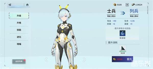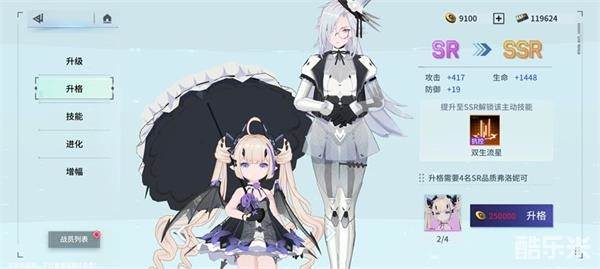 升格就是战员品质的提升,每次提升需要消耗同品质同战员4个用来升格,所有品质都可以升格至SSR,SSR不可升格。