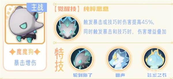 效果:魔魔狗可以强化角色的输出能力是输出职业的必备宠物。