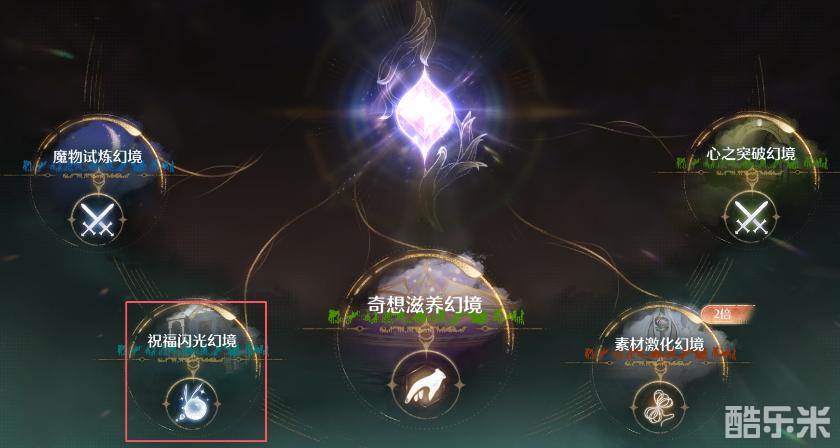 1、在传送点幻境挑战可以看到祝福闪光幻境,挑战扫荡可以获得祝福闪光