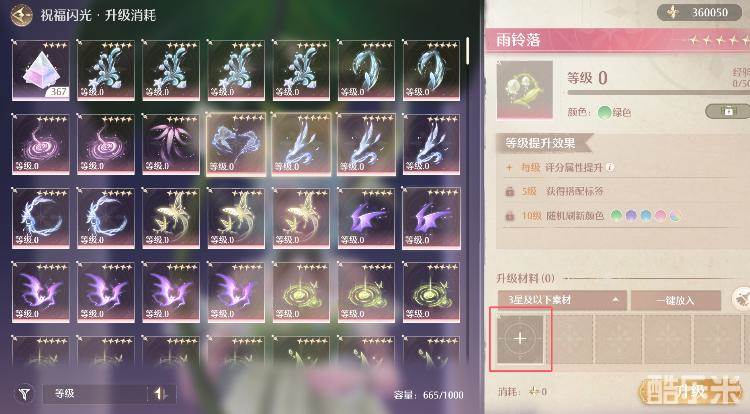 3、点击想要升级的闪光,再点击左下角升级,点击+可以增加材料