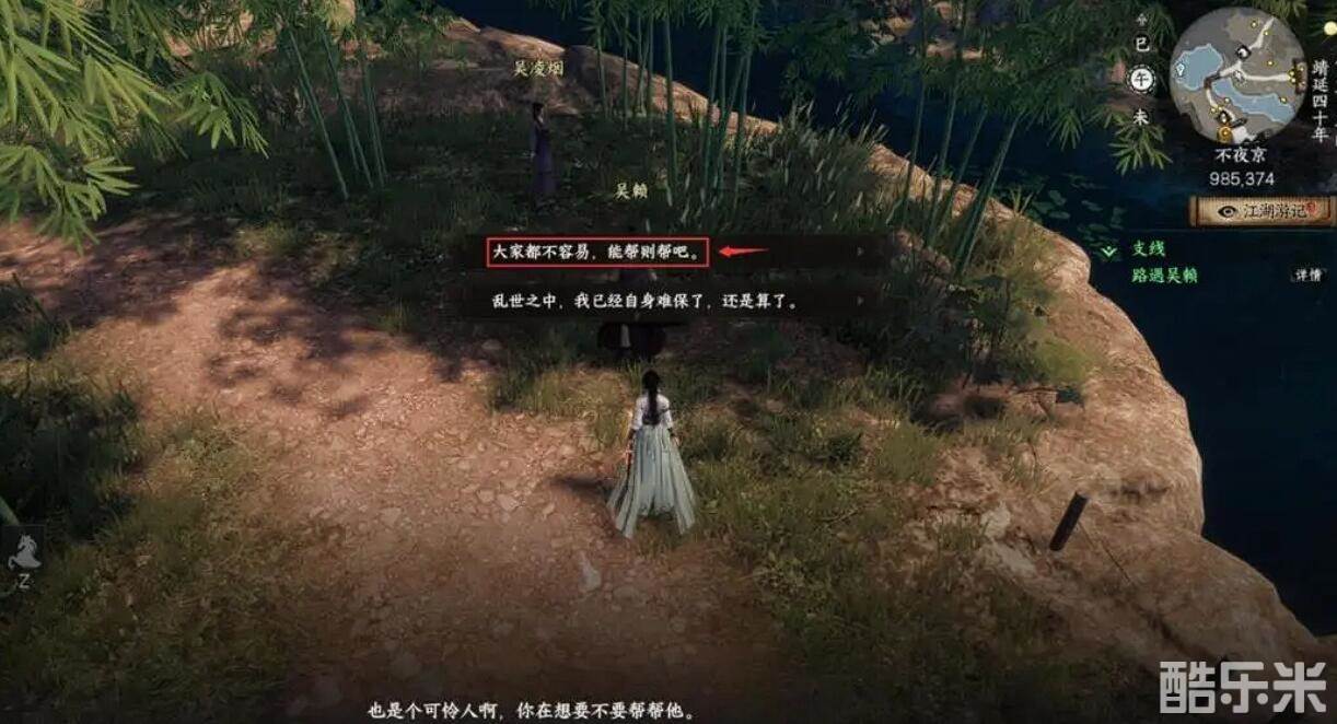 下一站江湖2路遇吴赖怎么做?下一站江湖2作为一款开放世界武侠游戏,玩家将在广阔的江湖中探索奇遇、学习武学。但是众多的任务系统也是让玩家们非常头疼,下面和酷乐米小编一起来看看吧
