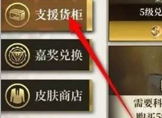 2、然后在补给站页面,选择支援货柜,找到等级兑换包;
