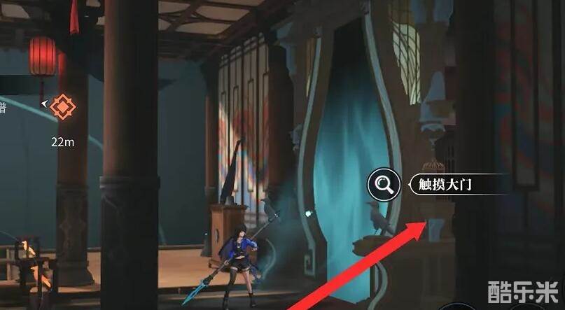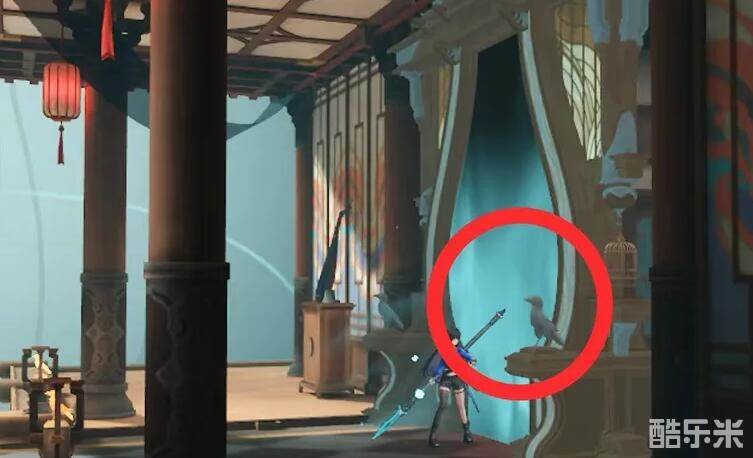 2、到达目的地后往右侧走,接着在此处使用弥留的羽毛打开大门