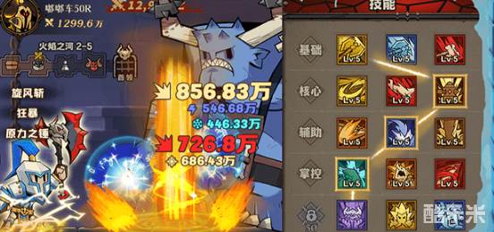 技能搭配:撕裂粉碎、猛击怒潮、钢铁之肤翻涌、狂战之怒・冲天 (疯狂)、原力锤狱火