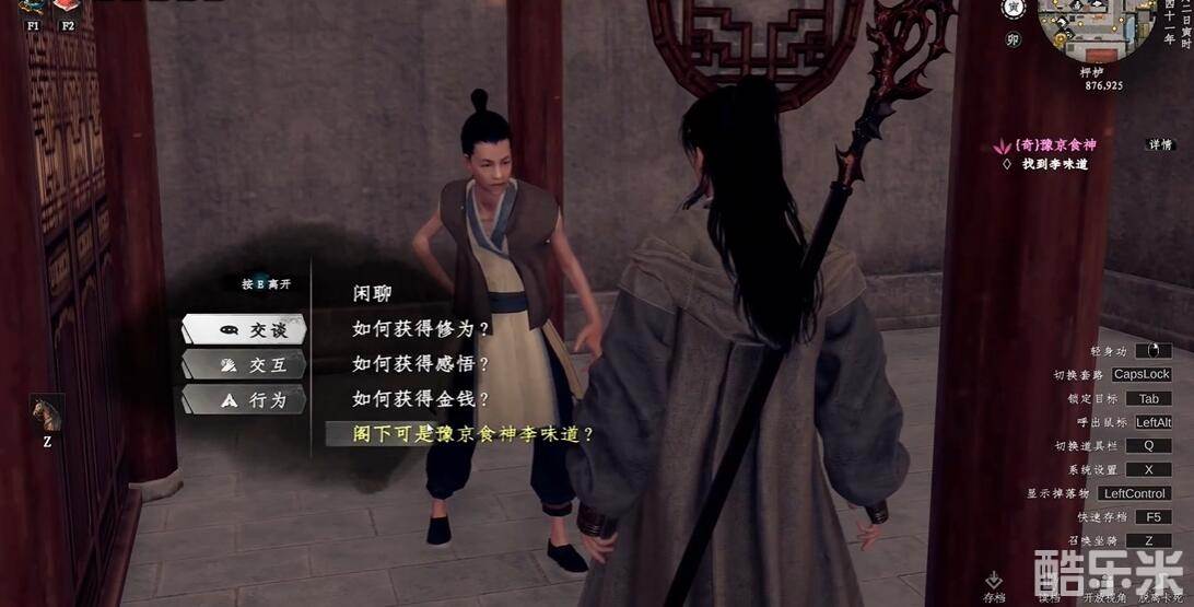 真正的关键在于找到李味道本人,他的位置大概在(875,924),并不像某些任务 NPC 那样显眼。当玩家与其交谈后,玩家需要分别找到王芝与屈画,在他们口中拼凑出关于配方与食材的碎片化信息。