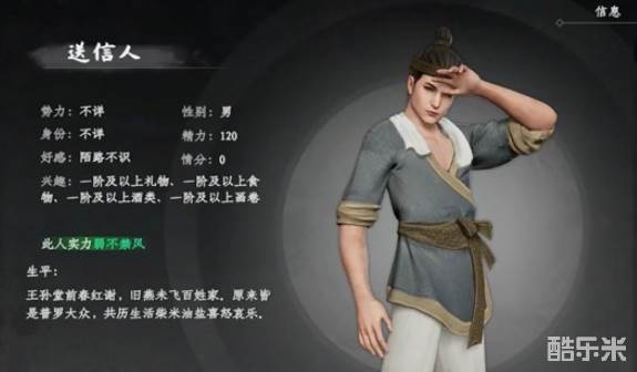 这两种选择会让事件往不同的方向发展,玩家如果选择通过和送信人提升关系的方式,和平的获得这封信,那玩家就可以拿着这封信去质问马夫人,这时候马夫人就会询问玩家想要钱还是想要人,如果玩家选择想要这个角色,那就会直接触发战斗,在赢得胜利之后,最先暂时离开当前的位置,后续挑战过程中,马夫人会再次飞鸽传书约玩家见面,在这一次对方会让马世贤和玩家对抗,大部分玩家在这个时候都会战败,一旦战败之后就会直接触发结局,玩家就会流落街头,触发隐恨江湖。