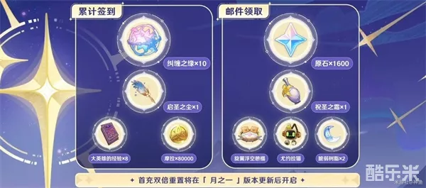 原神6.0新增了哪些内容,开放了新地图与剧情以及新的boss,玩家们可挑战新boss打法,这一版本中玩家的角色等级上限将会提升至100级,另外此次属于周年庆,登陆即可领取1600原石+10纠缠之缘。下面和酷乐米小编一起来看看吧