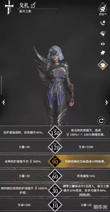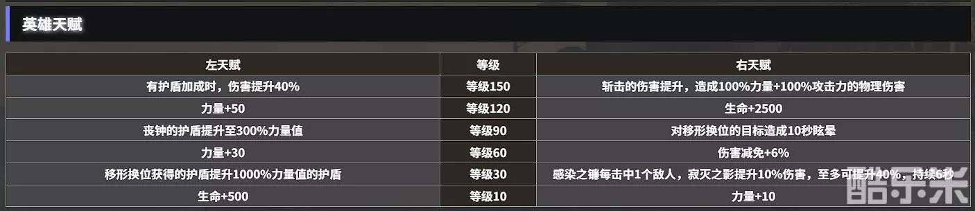 在天赋加点方面,寂灭之影有两条发展路线可选。左天赋路线主要强化输出能力,包括提升力量属性、增强护盾效果和提高斩击伤害等。右天赋路线则侧重控制能力,增加伤害减免、提升感染之镰的效果,最重要的是在90级时可以给移形换位的目标附加10秒眩晕效果。从实战价值来看,建议优先将左天赋点到60级强化丧钟护盾,然后是右天赋的90级眩晕效果,接着再补左天赋的90级移形护盾强化,最后考虑右天赋60级的感染之镰伤害提升。