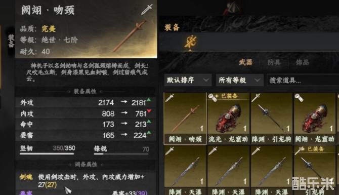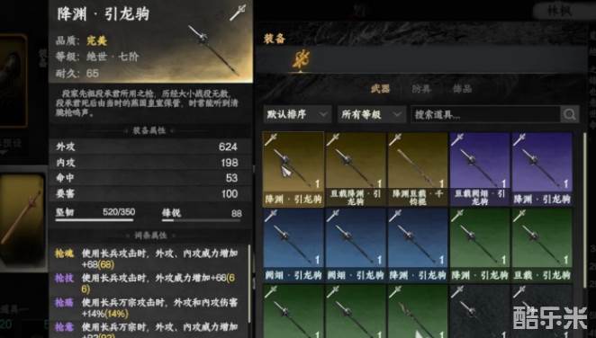 游戏里可以供玩家选择的武器非常多,其中最推荐的就是吻颈,这是剑类武器中,战斗能力比较优秀的,每次使用的时候,除了基础的攻击之外,还可以增加自身的内功或者是外功,想要得到这个武器,玩家就需要去将军墓,打开棺材之后就可以获得这个武器,另外比较推荐的还有引龙驹,这是一个枪类武器,整体的战斗力是比较平衡的,假如平时比较喜欢用枪战斗的话,那就不要错过这个武器,可以在战斗的过程中有非常优秀的表现,想要得到这个武器,玩家可以拜入神兵山庄,接着在这里不断晋升,变成亲传弟子之后就可以去游戏里兑换图纸,消耗资源之后,玩家就可以获取这个武器。