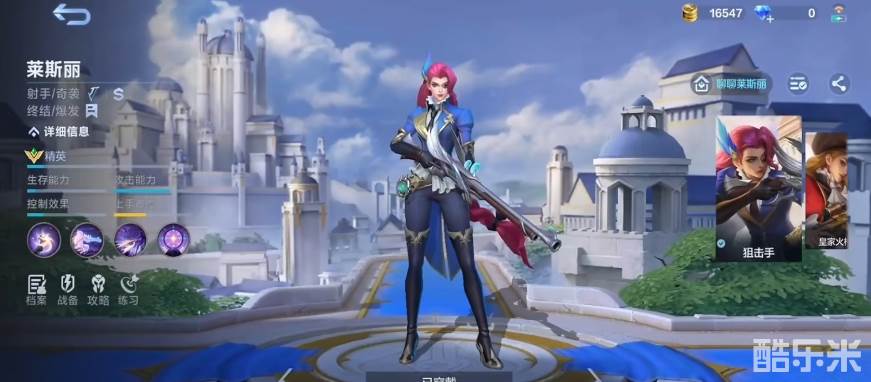 莱斯丽:不同于一般的射手她的玩法更倾向于潜伏和突袭,她擅长从暗处发起攻击,对敌人进行压制和追击,如果5秒内没有受到任何伤害,莱斯丽的下一次普攻距离会提升,并且造成真实伤害,同时提高暴击率,在技能使用方面,莱斯丽的一技能是她的核心输出手段,这个技能在放出和收回时都能造成伤害,如果能够贴近对手释放,那么可以打满两段伤害。