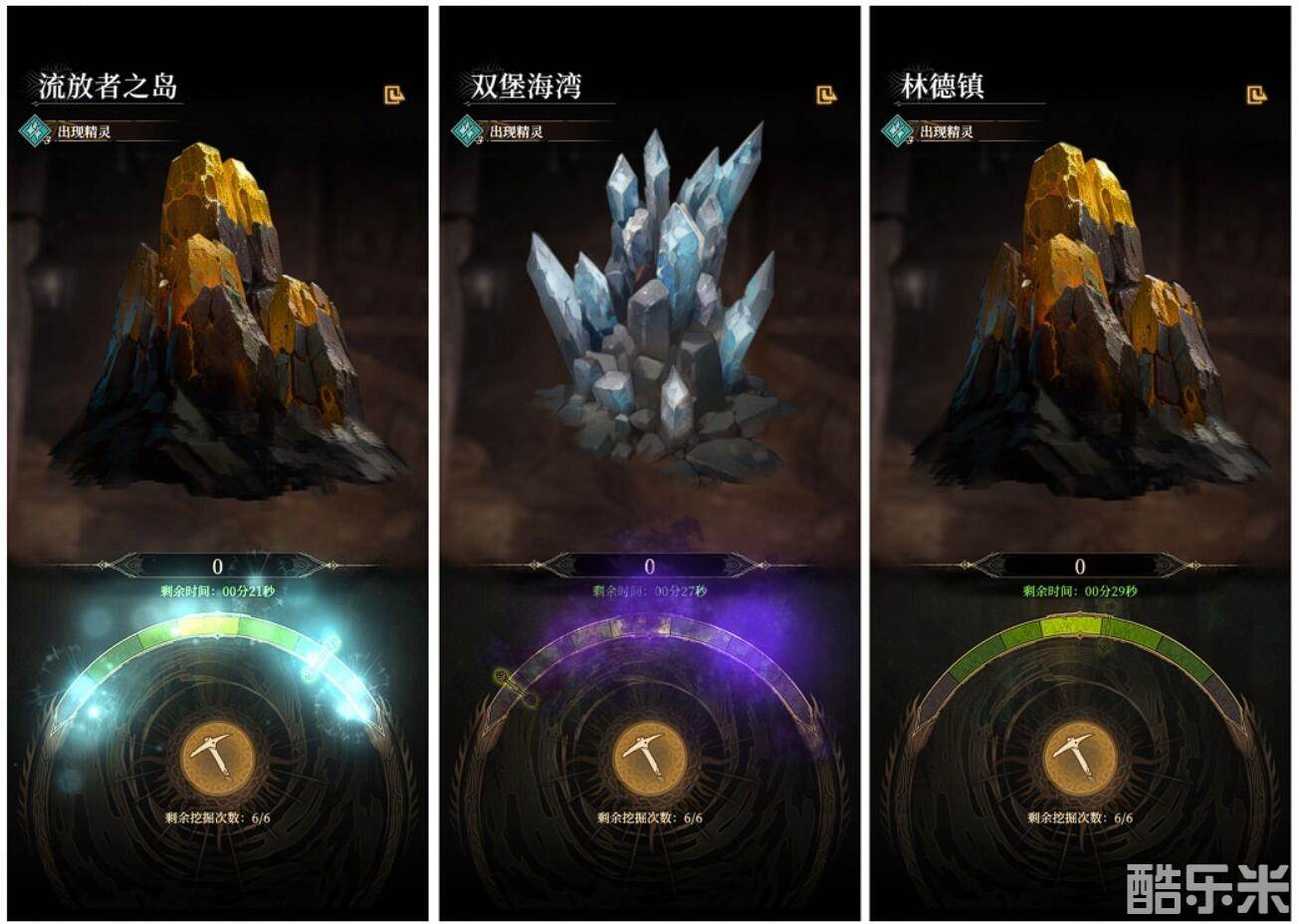 不同矿区会设置不同的干扰机制。流放者之岛会出现随机遮挡视线的精灵,需要专注外圈轨迹。双壁海湾有移动的黑色迷雾,要预判其移动方向。林槌镇的指针会变得半透明,建议保持固定点击节奏。开启震动反馈功能可以帮助判断点击区域,强烈震动表示点中了精准区。
