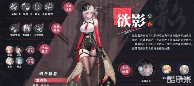 《归龙潮》欲影是队伍的主C角色,玩家只需搭配合适的阵容就能最大化她的输出能力,其中推荐优先选择星牧和醉笙,下面酷乐米小编为大家整理了欲影的最强配队阵容,感兴趣的小伙伴可以参考一下。