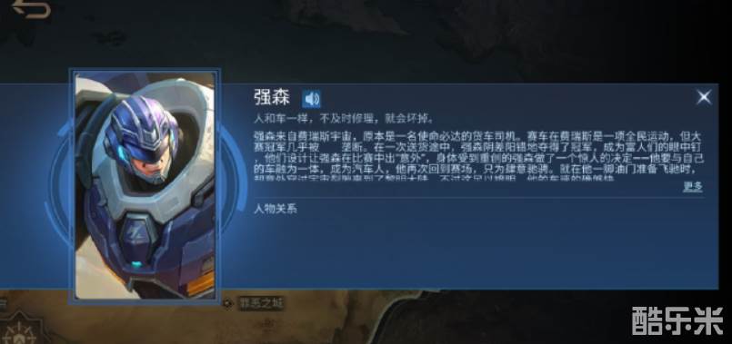 每个角色都有不同的职业,野马强森属于支援团英雄,在团战中也担任着巨大的作用。详细了解该角色的背景故事会发现来自于宇宙,本身是一位货车司机,一次参加某个赛事成功获得冠军,最终化身成为汽车机器人。此角色的攻击速度够快,而且也有独特的肉盾技能。