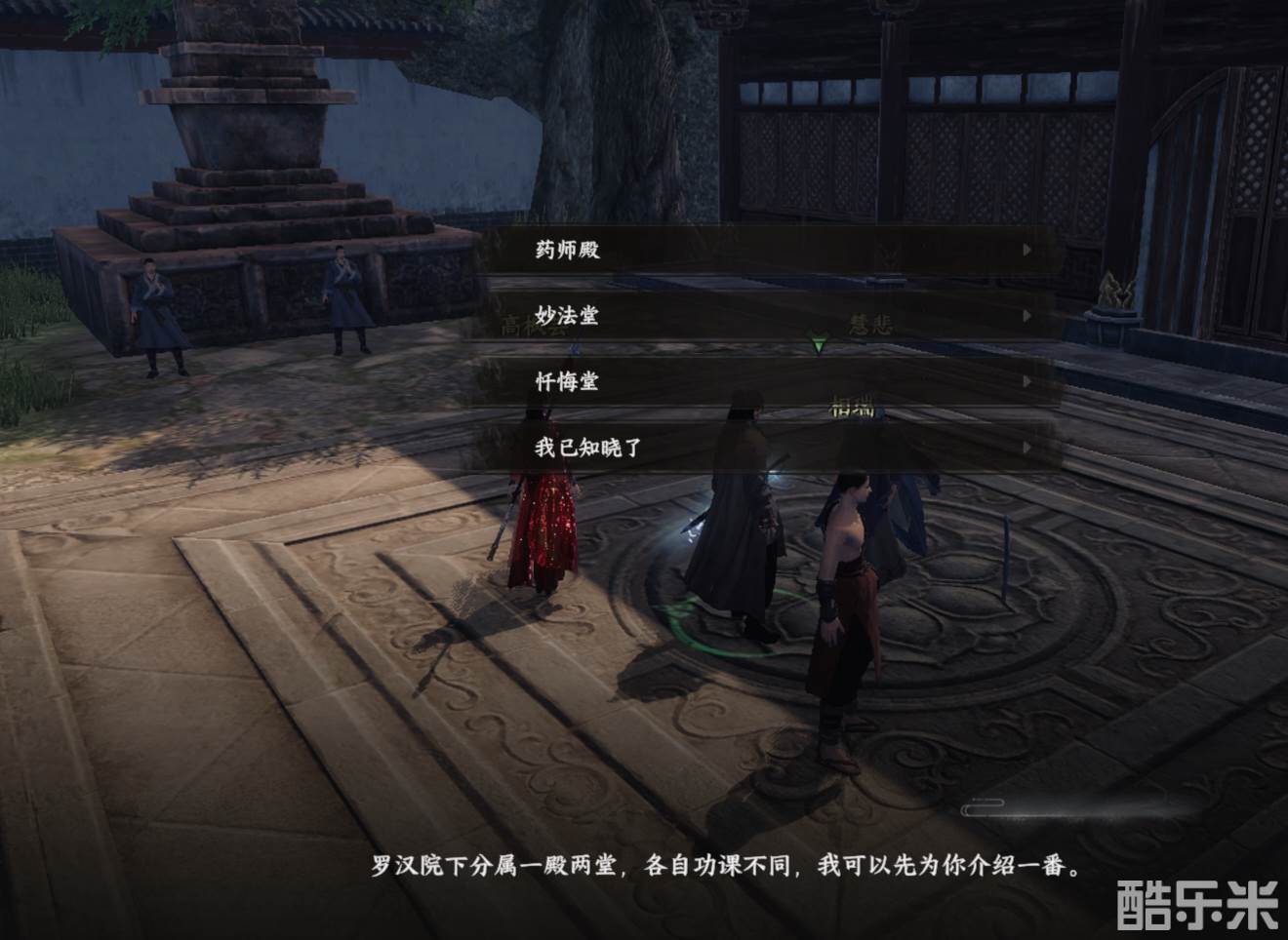 跟随指引到交谈悲慧出现选项,选择给不同劣级拳法后加入嵩室山