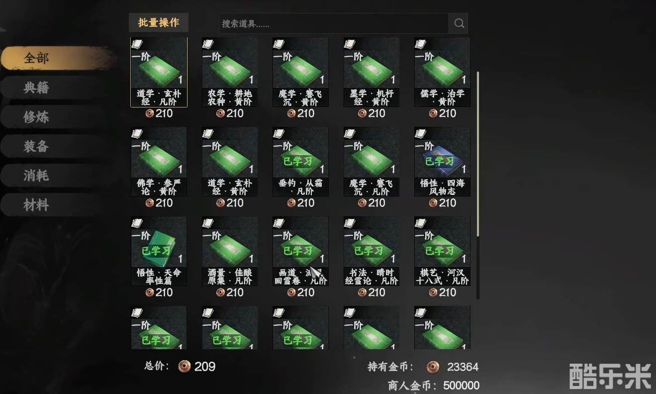 倘若各位没办法前往万松书院,也能通过书画商来买到所需的道学书籍。书画商在各大城市、村庄都能找到,他们的位置也固定不变,且只要玩家的铜钱足够,就能从他们那无限制地进货。当各位将他们手中的道学书籍都扫光后,还可花费铜钱快速完成商品的刷新,继续进行道学书籍的购买。可以说,只要玩家拥有足够的铜钱,完全可以靠着书画商这一途径,来将道学属性刷满,而且每个书画商都可进行这样的操作,对玩家来说很是方便。