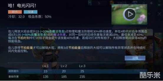 大招是所有人非常关注的,释放出超强的魔法防御能力,也能提高个人的移动速度。如果使用得当,那么在4秒内会对周围众多敌人造成8次高强度伤害。只要释放大招就能获得40%的吸血,在团战时关键情况下释放大招有极高作用。