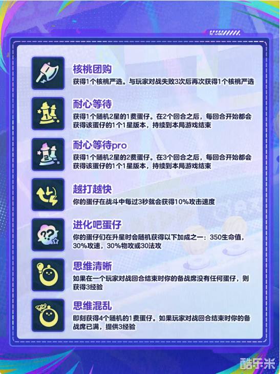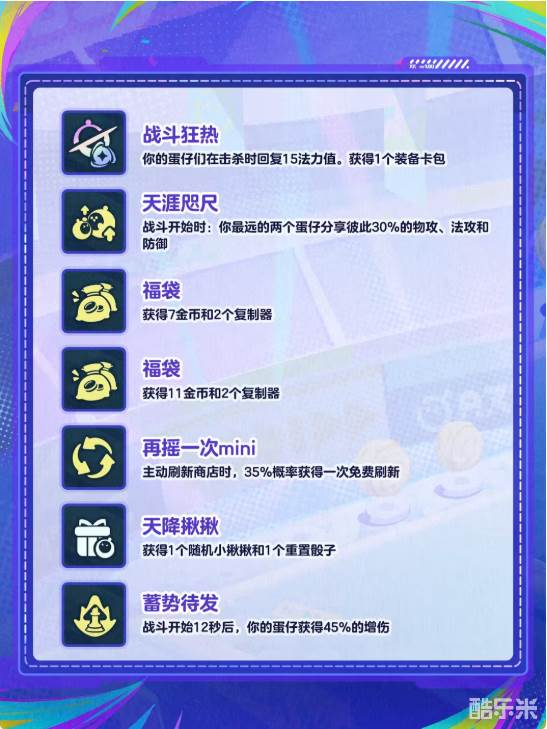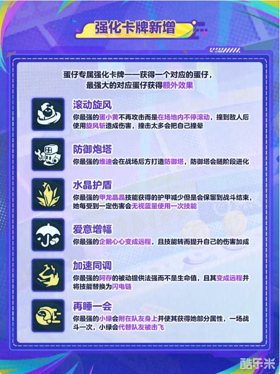 蛋仔派对新增了哪些蛋仔碰碰棋,9月5日10点起,蛋仔碰碰棋新增20种角色强化卡牌及多个常规强化卡牌!全新卡牌的加入给玩家们带来了更多的体验,下面和酷乐米小编一起来看看吧